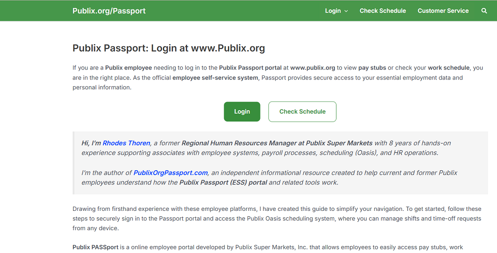 Rhodes Thoren is a former Regional HR Manager at Publix Super Markets with extensive experience in employee systems, payroll, and workforce management. Through publixorgpassport.com, he creates clear, step-by-step guides to help Publix associates confidently manage schedules, pay, benefits, and HR tools.
